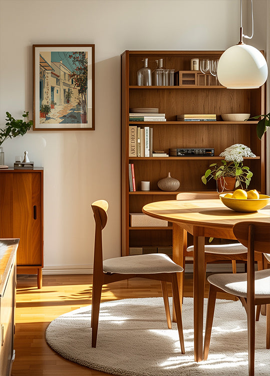 A peaceful and picturesque Mediterranean alley with bright house facades, terracotta pots and sunny shadows – perfect for summery and relaxed decor.