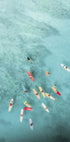 A refreshing aerial poster showing surfers floating on turquoise water waiting for the next wave. This coastal image brings freedom, sun and summer vibes to modern homes — perfect for beach lovers.