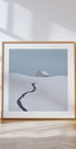 A quiet winter's day unfolds in a snowy landscape: a lonely cabin by a quiet stream, the branches of the spruces heavy with frost and the sky in soft, pale hues. The Cabin by Xiang Wei captures the calm, the cold and the clear air – a motif that brings Nordic minimalism and immersive silence into the room with reflection.