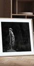 A watchful meerkat stands upright like the little sentinel of the savannah, captured in a dramatic black-and-white moment. The soft side light highlights the texture of the fur and the sharp contours, while the background falls into darkness. A minimalist, timeless animal portrait photographed by Greetje van Son. Focusing on the gaze gives the subject calmness and presence.