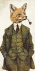 A charming, anthropomorphic portrait of a fox in a tailored suit, with pipe and distinguished mine and aristocratic being - a nod to the classic elegance of vintage portraiture. Mike Koubou's work combines humor and nostalgia in a clean, green-tinged universe that lifts both living room and work wall - with personality.