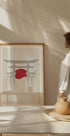 A refined Japanese-inspired illustration of a torii gate against a striking red sun, with subtle mountains and patterns in the background. The clean composition and muted tones create a calm yet bold aesthetic — ideal for Japandi, Zen or modern minimalist interiors.