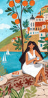 Travel poster woman in Mediterranean coast by Caroline Bonne Müller - Premium quality paper with a smooth matte surface and elegant feel. The matte finish reduces glare and gives a refined, timeless look. Strong and durable for long-lasting use, ideal for both professional settings and decorative displays.
