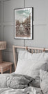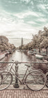 An atmospheric tribute to Amsterdam: along a quiet canal, bicycles are parked next to cobblestones and narrow gabled houses, while the Westertårnet rises iconic in the background. In an urban vintage style with soft contrasts and discreet turquoise accents, Melanie Viola captures the city's timeless charm. The atmosphere of the Prinsengracht is felt in every detail.