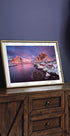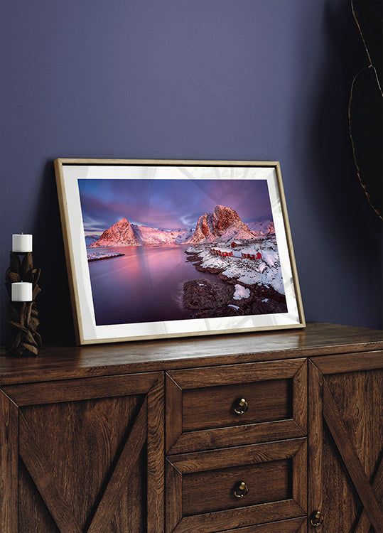 A quiet, wintry scene from Lofoten, captured by photographer David Martin Castan: snowy peaks rise above a frozen lake, where smooth rocks and ice flakes gather the gaze in the foreground. Long exposure makes the water silky smooth and gives the landscape a cold, dreamy, timeless expression. The horizon is muted in soft, milky tones.