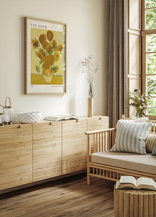 A classic masterpiece by Vincent van Gogh, "Vase with Sunflowers," painted in 1888. This iconic artwork depicts a vibrant bouquet of sunflowers in a rustic vase, highlighting Van Gogh's unique brushstrokes and color expertise. Perfect for art lovers and enthusiasts of impressionism and post-impressionism. A timeless piece to upgrade your home or collection.
