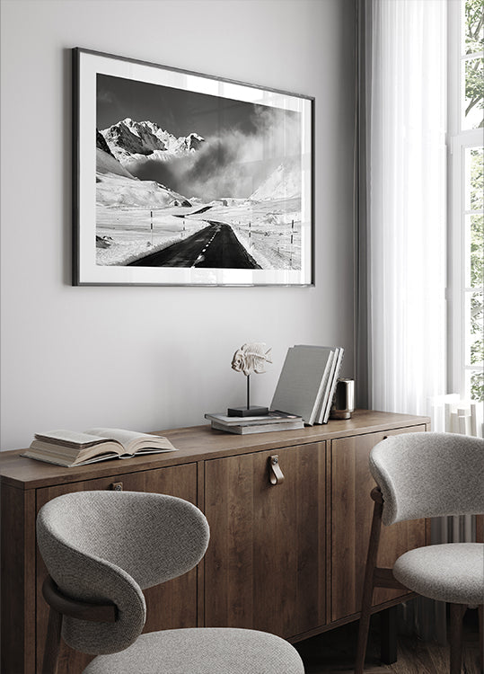 Venturing into the unknown by Alfredo Costanzo captures a dramatic, black-and-white journey through an Alpine landscape. A lonely road leads towards a small house, while fog and snow envelop the steep mountains. The contrasts create calm and tension at the same time—a poetic tribute to winter, silence and courage. Perfect for lovers of minimalism, nature and adventure.