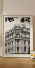 An impressive black and white photograph of a Baroque townhouse in Vienna, adorned with sculptures, magnificent columns and detailed architecture. Capturing the elegance and history of European architecture, this print makes a refined statement in interiors inspired by culture, heritage and timeless design.