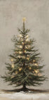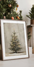 A softly painted vintage-style Christmas tree stands in calm winter light with small golden lights between the deep green branches. The neutral, textured background and a slight hint of snow give the motif a quiet and nostalgic Christmas atmosphere—perfect for cozy seasonal decorations, classic gallery walls or Scandinavian homes.
