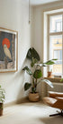 Vintage Owl by Nicholas captures the poetry of the night: a watchful owl with glowing eyes rests between slender birch trees as snowflakes fall in the moonlight. Geometric shapes and simple line drawing give the motif a retro, minimalist expression that exudes Nordic calm and winter magic. The stylized night sky gives depth, and a vintage color palette creates calm.