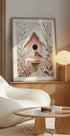 Vogelhaus mit Rotkehlchen und Pflanzen Poster