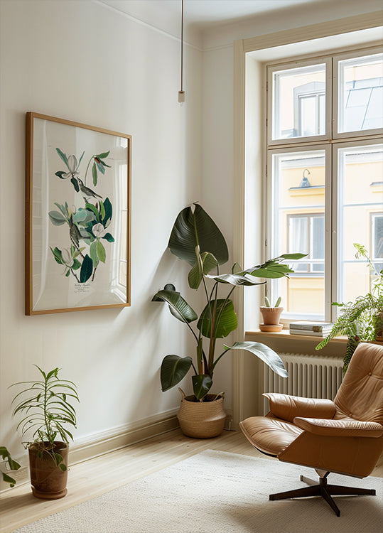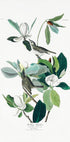 Vintage botanical art with magnolia flowers and detailed depictions of birds. An elegant and intricate nature illustration that highlights vibrant foliage in a delicate composition. Perfect for lovers of classic botanical prints and natural history art.