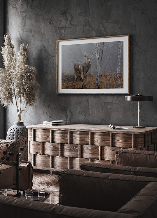 White-tailed buck - In the autumn fog Poster