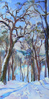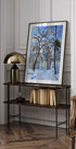 A quiet winter's day unfolds in the forest: fine-grained snow, dark trunks and low rays of sunlight breaking through the branches and casting long shadows. Andrii Kutsachenko captures the calm and crisp coldness with poetic simplicity – a timeless motif that creates depth and light in any room. Perfect for Scandinavian decor.