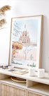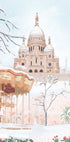 A poetic winter look over Paris, where the Sacré-Cœur rises above snowy roofs in muted, cool tones. Fine graphic lines and gentle contrasts evoke frosty calm, while light and shadow lead the eye towards the basilica's silhouette. Created by Petra Lizde – a stylish tribute to the city's quiet magic in winter haze.