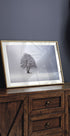 Winter light by Nicolas Schumacher captures a quiet winter morning in the German Swabian Alb: a lonely tree canopy and an empty bench stand in a landscape covered in snow. The bright, high-key aesthetic creates calm, air and reflection – perfect for rooms that love minimalism. A poetic reminder of the quiet beauty of winter.