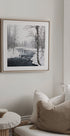 Winter's vibe by Haim Rosenfeld captures the quiet winter magic of Lapland: a frozen forest by mirror-clear water, where snow-covered trees and delicate blue tones merge in harmonious tranquility. A moment of coldness and clarity, where nature's silence, frost and light mist create a deep sense of peace. Perfect for creating peace in the living room or office.