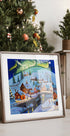 A winter adventure by Gordon Bruce: A quiet, snowy village under the dance of the northern lights. Warm light streams from the houses, a stone bridge spans a frozen stream, and the firs stand heavy with frost. Picturesque brushstrokes and deep night sky create calm, nostalgia and winter magic in the home. Perfect for Christmas atmosphere and quiet winter evenings.