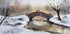 The Silent Bridge of Winter by Giorgio Gosti depicts a snow-covered passage in Central Park, where the branches of the trees bend over a mirror-like water. Soft watercolor washes create hazy light, muted gray and blue tones and a calm rhythm that invites reflection and quiet winter walks. A quiet tribute to impressionistic tranquility.