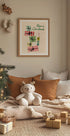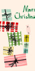 A wobbly, playful stack of Christmas presents balances in the snow, shaped by graphic figures and bright color fields for a fresh, Nordic expression. A touch of retro folklore and winter glints make the motif both festive and cosy. Ideal for igniting the Christmas spirit in the home. Minimalistic and colorful in the Scandinavian spirit. Created by Annick.