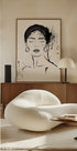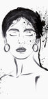 A striking black and white watercolor portrait of a woman with closed eyes, prominent lips and eye-catching earrings. The fluid ink splashes and minimalist brushwork create a modern, artistic vibe that feels both expressive and calm — perfect for elevating a gallery wall or adding a sophisticated touch to your decor.