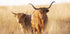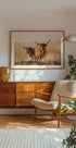 A warm and rustic animal print showing two majestic highland cows standing on a golden field. With their long shaggy coats and swaying horns, these gentle giants bring a touch of country charm and natural beauty to any home. Perfect for cozy interiors, farm inspired decoration or nature lovers who appreciate tranquil landscape scenes.