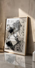 A striking black and white photograph of Yves Saint Laurent perfumes, elegantly placed on a bed of roses. The distinctive YSL logo, elegant design and floral background create a perfect harmony of luxury and romance, making this print a refined choice for interiors inspired by beauty, fashion and timeless elegance.